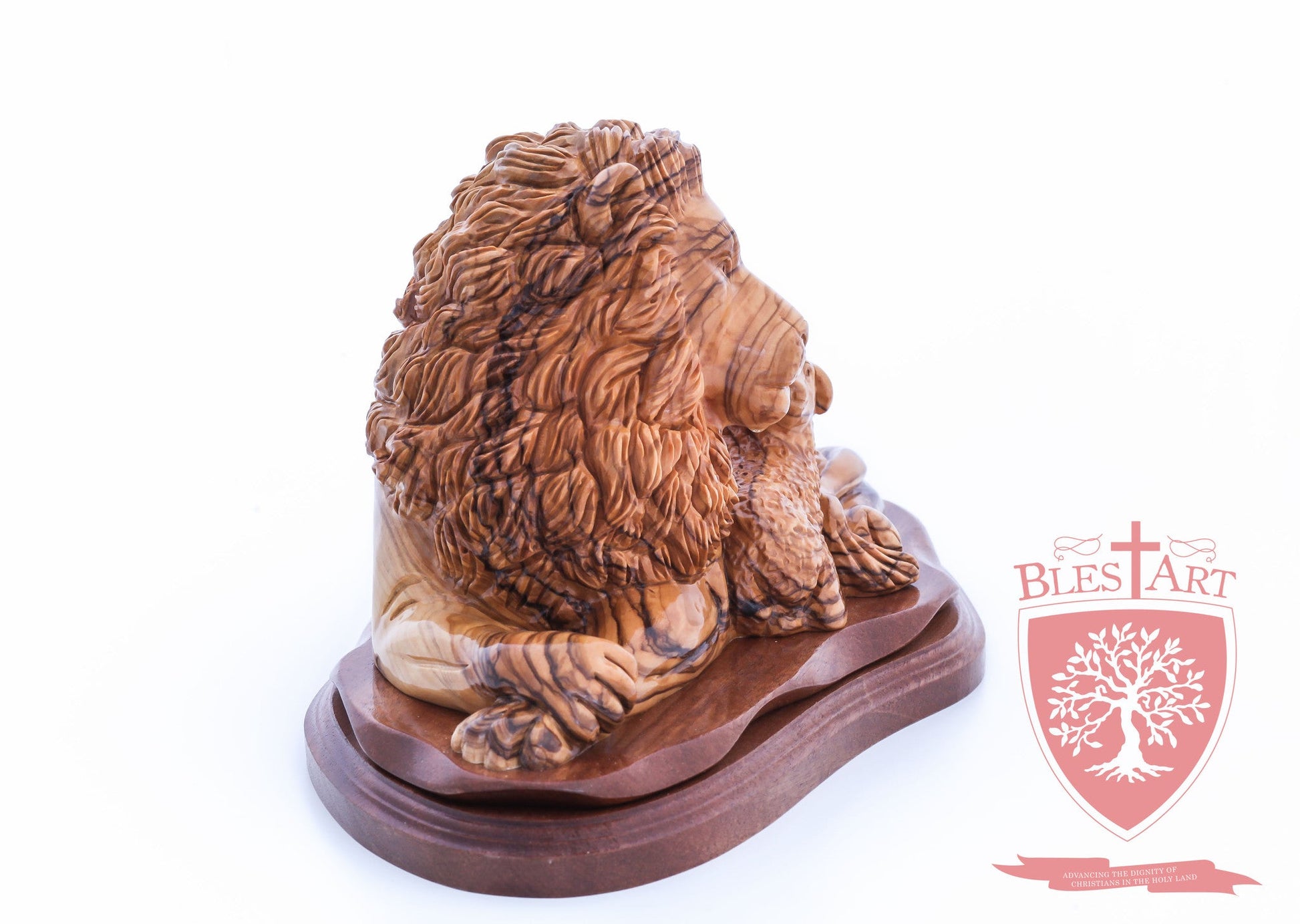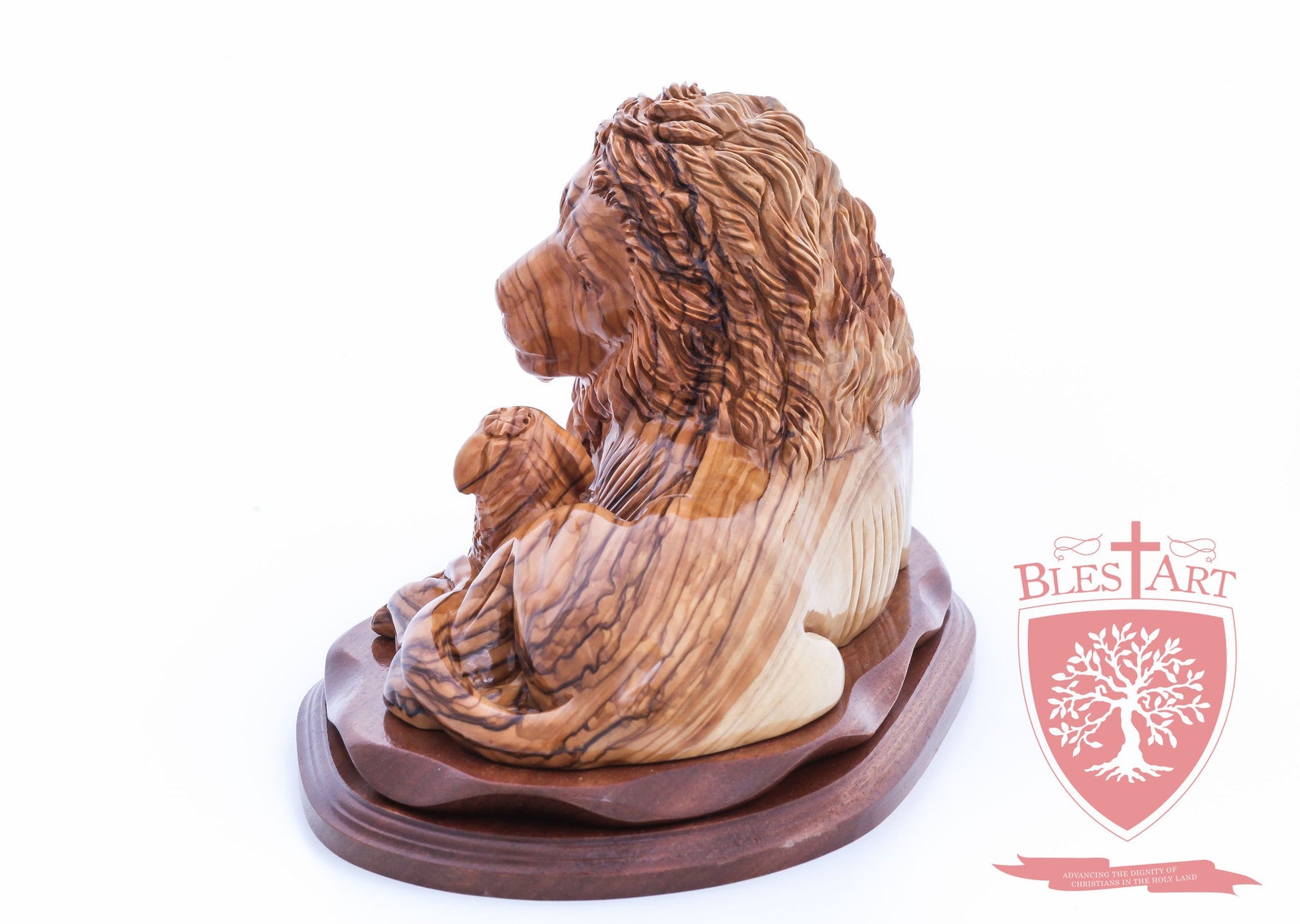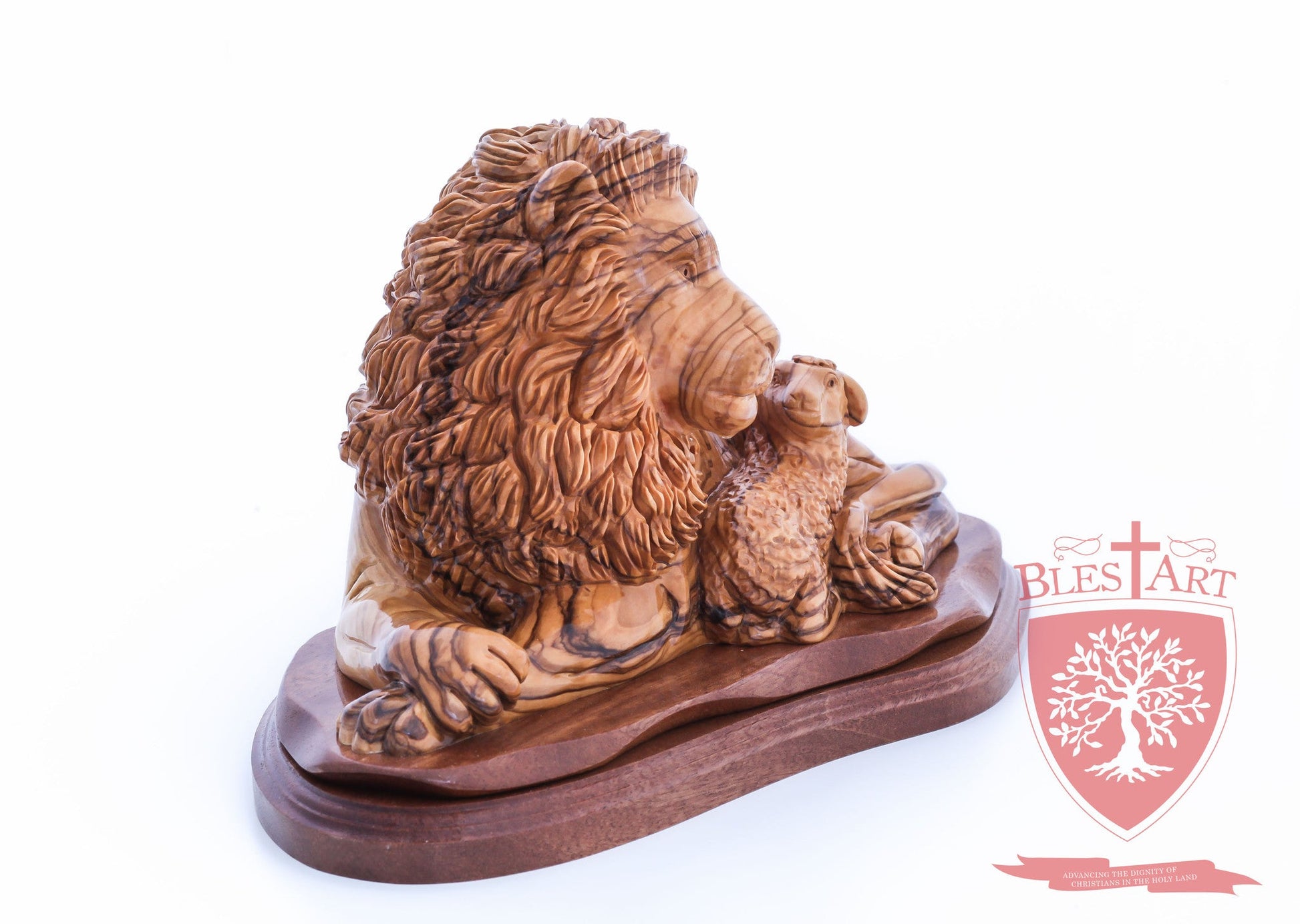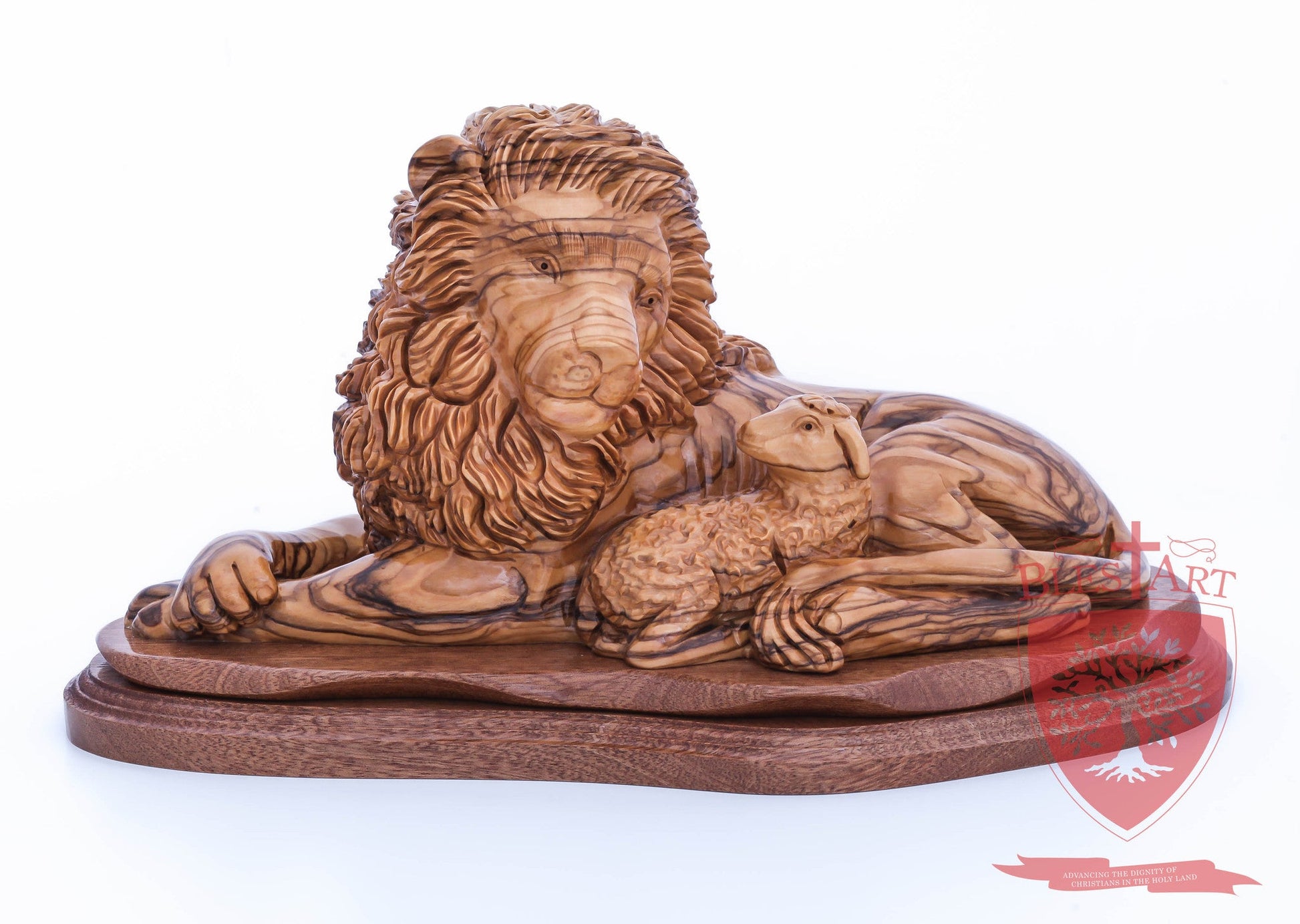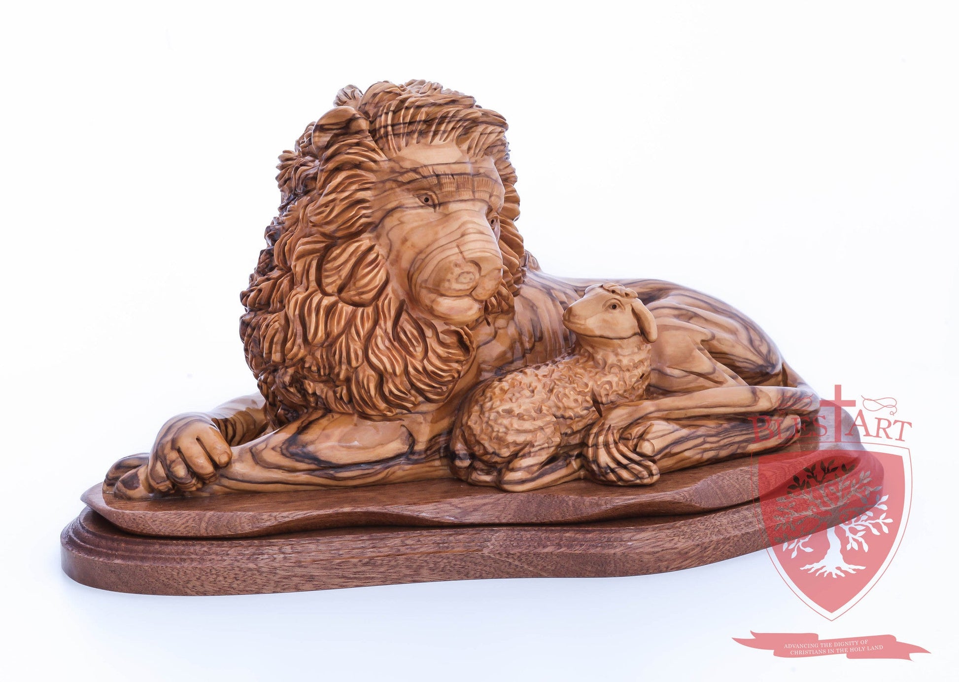 Lion and the Lamb, Cathedral Quality. Hand carved from the finest Olive wood in the Holy Land Size: 6.50" / 16 cm height , 11'' / 28 cm width.