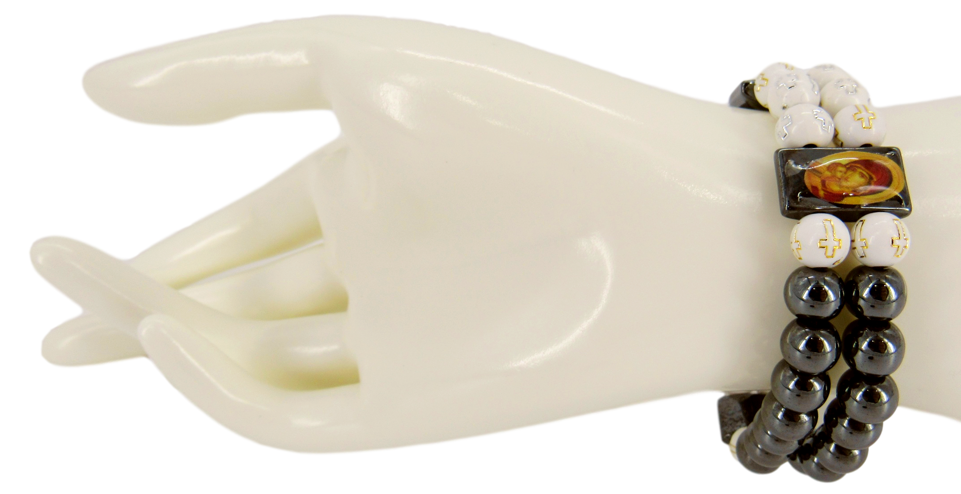 Handmade Bracelet, Hematite beads, Black and white with different icons