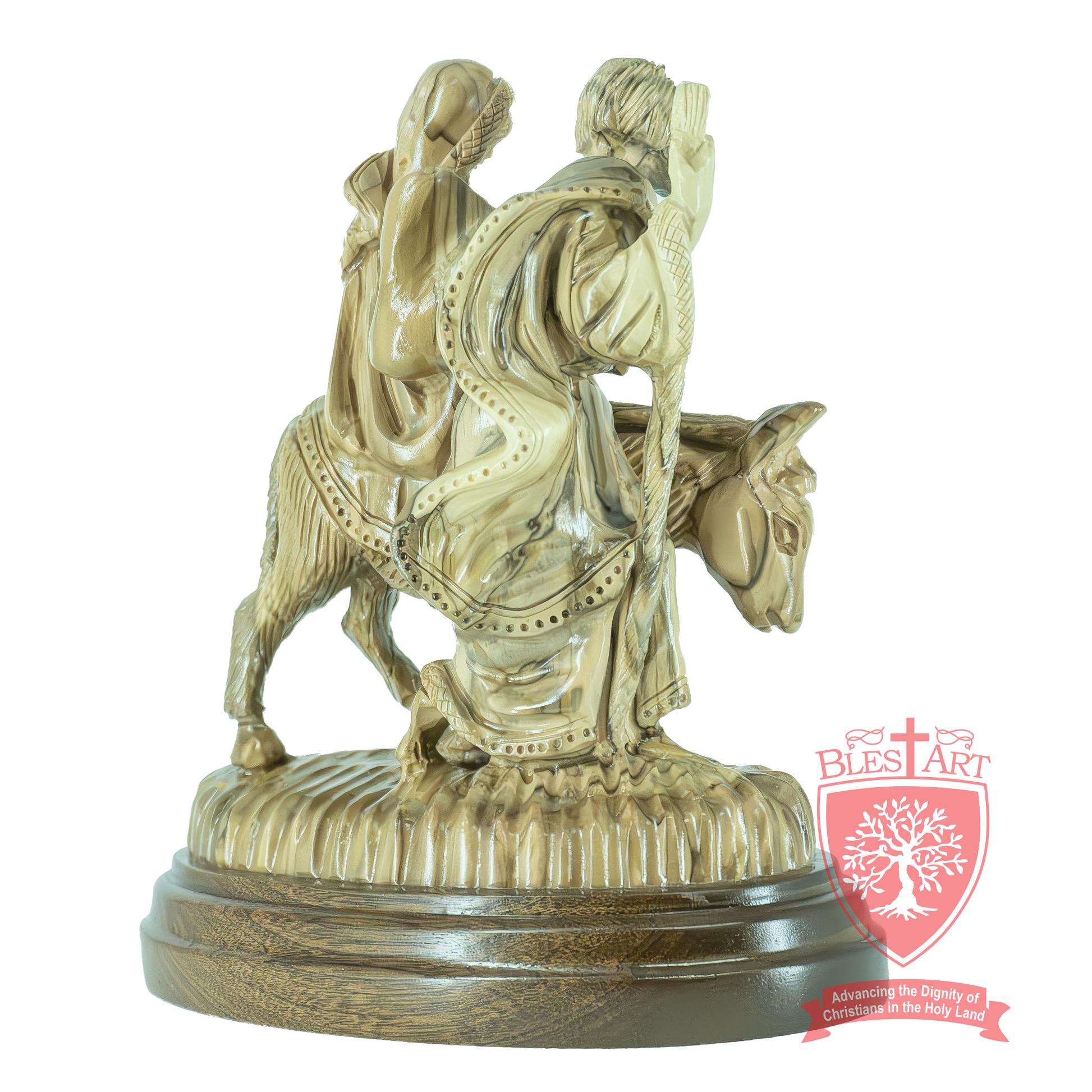 Bring the meaningful symbolism of the Holy Family's journey with this beautifully hand-carved flight to Egypt statue. Made from olivewood in the Holy Land, it serves as a reminder of resilience and hope. Perfect for any Christian home or as a gift for loved ones.