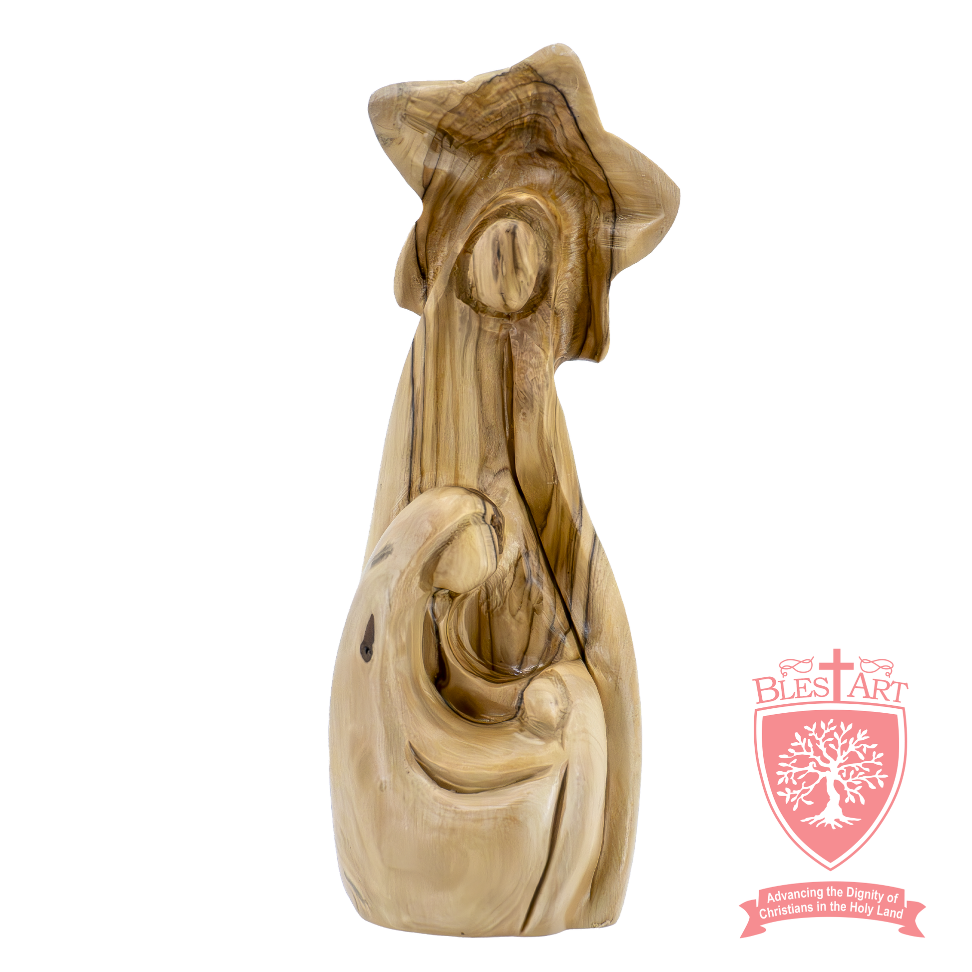 The "Divine Elegance" Olive Wood Holy Family Star-Shaped Statue is more than just a religious artifact; it's a piece of art that encapsulates the essence of faith and heritage. Whether displayed in a place of reverence or given as a thoughtful gift, this statue is a symbol of devotion, hope, and the enduring legacy of the Holy Land. Invite the grace and beauty of this sacred region into your life with this exceptional work of art.
