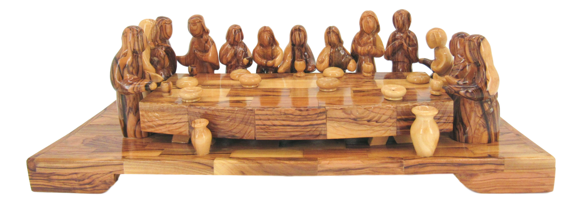 Olive wood hand carved Last Supper, Plain, Size: 17.7" x 8.5" x 6"