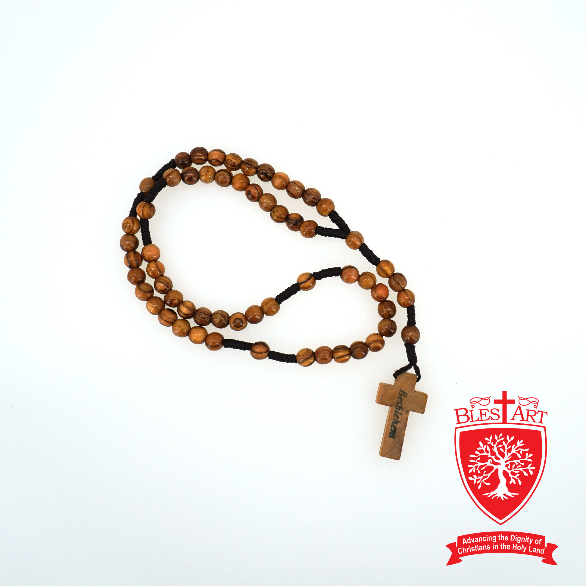Hand-made Olive wood Rosary with Latin Cross stamped with "Bethlehem" word.