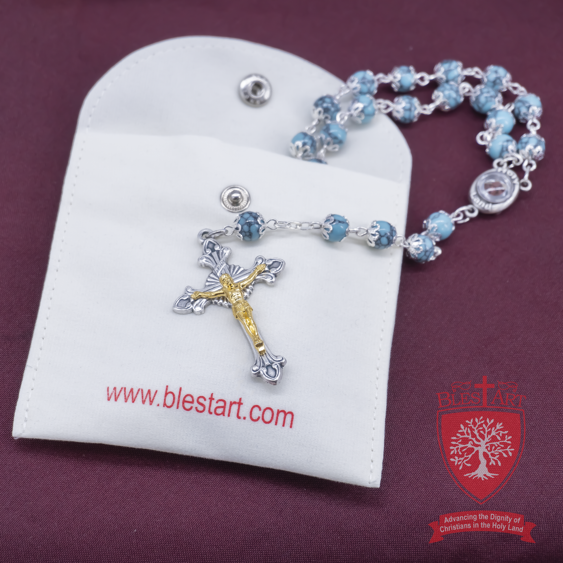 Hand made Rosary, With gemstones and Soil from the Holy Land, Available in Different colors. Size: 21.50" / 54.6 cm long